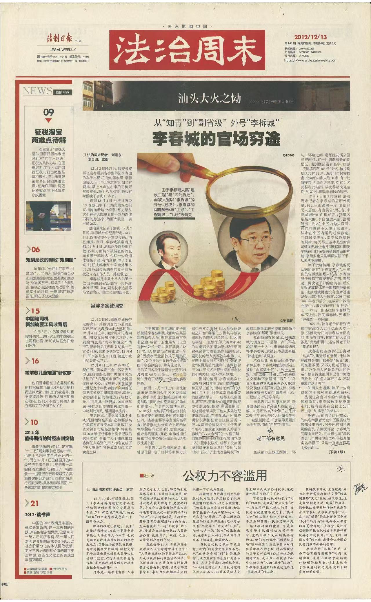 法治周末 2012年12月13日第148期第一版 |
