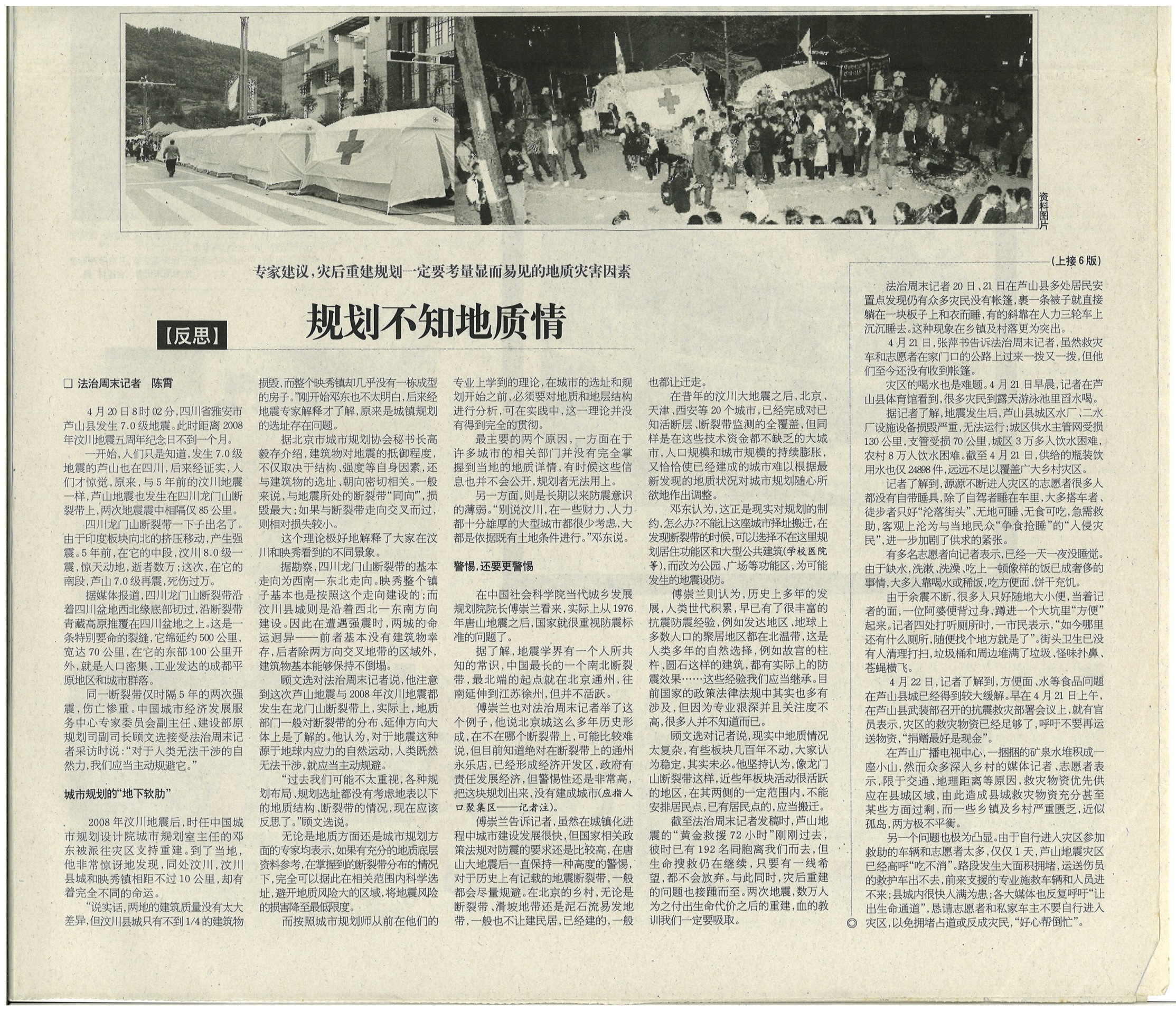 编前语:笔者先后亲历汶川大地震、芦山大地震。两场地震发生时,笔者均为媒体记者,均第一时间赶到震中区采访。芦山大地震发生后不久,笔者就立即驾车前往雅安。幸运的是,在成都到雅安的高速公路入口即将紧急封闭的最后一分钟,笔者赶到。亮明记者身份后,被设置路障的交警同志放行——笔者也是当时唯一一辆被放行通过的社会车辆。在芦山震中区采访的那段时间里,笔者不洗澡、不洗脸,每天靠方便面充饥,直到六天后才离开。两场大地震已经过去十多年,但地震对当地人的心理产生的震撼和影响却一直没有消失。笔者也因为大地震产生了一些应激反应后遗症:每当轧路机从身旁驶过,地面震动,笔者就会条件反射般地惊出一身冷汗。这种症状十年后才消失。(刘建永)